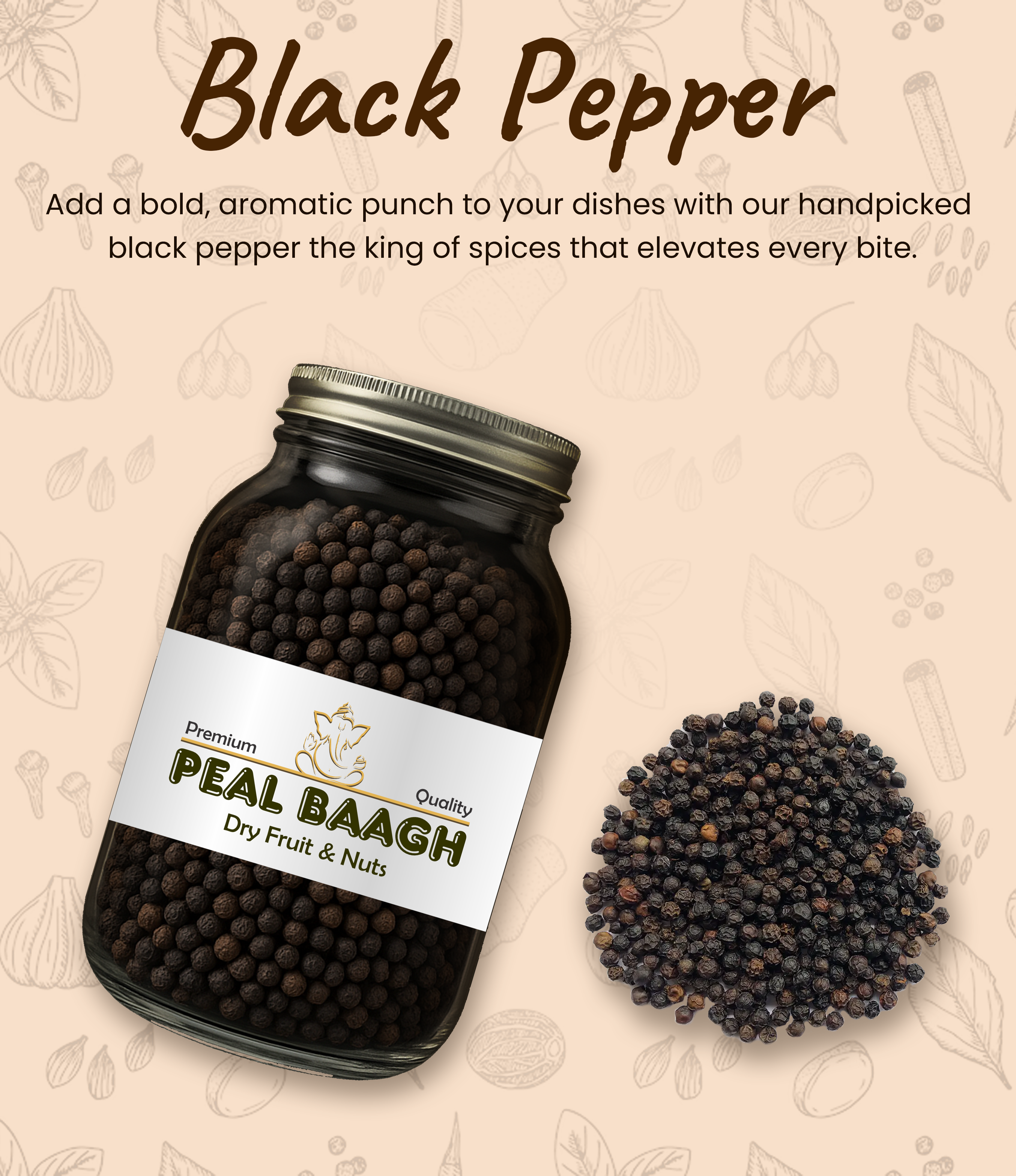 Premium quality black pepper with sharp aroma and strong pungency. Perfect for seasoning, spice blends, and medicinal uses.